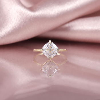 Özel altın takı gerçek 18K tektaş 2ct yastık kesim VVS Lab elmas saflık sarı 14K katı altın yüzük